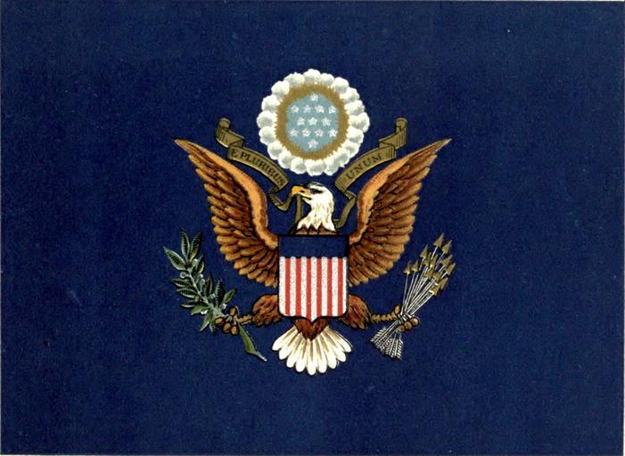 Keywords: US Presidential Flag Navy 1899.jpg US Presidential Flag Navy 1899 svg The Navy's presidential flag as depicted in 1899 The design was the Great Seal of the United States on a blue field; the flag had just recently been redesigned to better conform with the 1885 update of the Great Seal The original 1882 flag had an all-white eagle and had an arc of stars instead of the full crest The Army had their own presidential flag starting in 1898 until both were replaced in 1916 The 1899 http //www archive org/details/ofmaritimeflagsn00unitrich Flags of Maritime Nations a U S Navy publication image plate 2 1899 U S Navy Bureau of Equipment PD-USGov-Military-Navy PD-US Flag of the President of the United States Personal flags of the United States Navy Blue green red white yellow flags E Pluribus Unum Flags with arrows Flags with banners Flags with branches Flags with eagles Flags with thirteen stars Flags with mottos Flags with white five-pointed stars JPG flags |