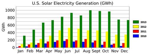 Keywords: US Solar Generation-2013.svg translate yes en U S solar generation in 2013 in GWh from http //www eia gov/electricity/monthly/index cfm Electric Power Monthly Table 1 1 A 2014-11-17 own Delphi234 other versions cc-zero Uploaded with UploadWizard Solar energy statistics of the United States |