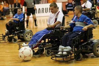 Keywords: US v FR 2007 FIPFA WC.jpg en US versus France in final of 2007 FIPFA World Cup Tokyo Japan USA vs Francia Coppa del mondo FIFPA Tokyo Own Majmule Association football at the Paralympics People in wheelchairs Motorized wheelchairs Wheelchair sports |