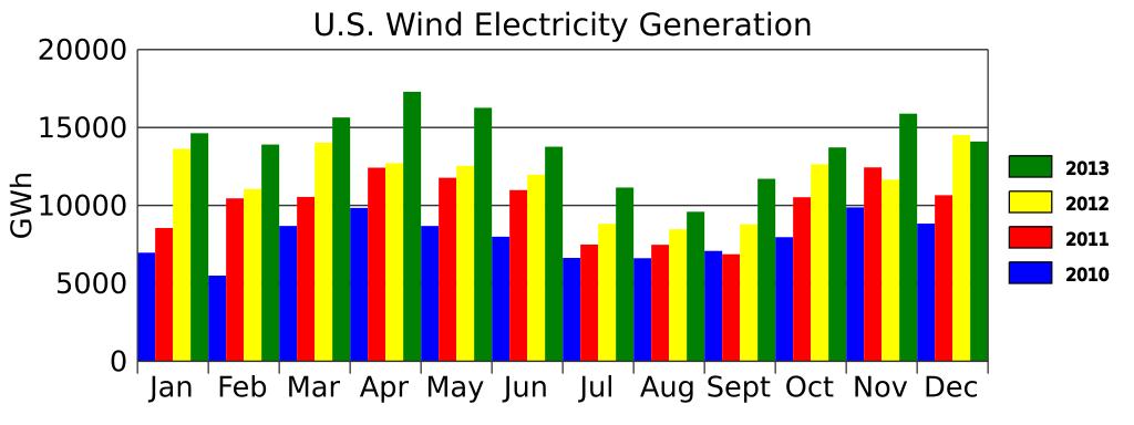 Keywords: US Wind Generation-2013.svg translate yes en U S wind generation in 2013 in GWh from http //www eia gov/electricity/monthly/index cfm Electric Power Monthly Table 1 1 A 2015-05-14 own Delphi234 other versions cc-zero Uploaded with UploadWizard Wind energy statistics of the United States |