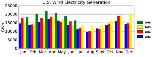 Keywords: US Wind Generation.svg translate yes en U S wind generation in GWh from http //www eia gov/electricity/monthly/index cfm Electric Power Monthly Table 1 1 A 2015-05-14 own Delphi234 other versions current monthly cc-zero Wind energy statistics of the United States |