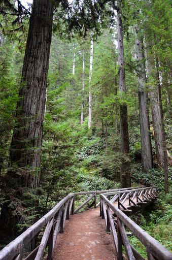 Keywords: usa america california sequoia trees ladybird johnson grove redwood national park nature forest redwood foggy bridge wooden bridge trail away