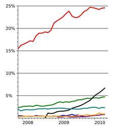 Keywords: Usage share of alternative web browsers.svg Usage share of alternative web browsers Source StatCounter svg Newer data middle of 2008 October 2011 Legend red Firefox black Chrome green Safari teal Opera blue Netscape purple Opera Mini Orange Other validSVG Usage share of alternative web browsers all browsers except MS IE Schema che mostra l'uso dei browser alternativi tutti i browser tranne MS IE Marktanteile alternativer Webbrowser alle Browser außer MS IE Alternatif web tarayıcılarının kullanım oranları MS IE hariç أغلب المستخدمين يفضلون برنامج موزيلا فاير فوكس الأكثر شعبية Procentowy udział alternatywnych przeglądarek na świecie Reparto del uso de navegadores web alternativos todos los navegadores excepto MS IE Использование альте нативных б аузе ов всех к оме IE 使用 主流網頁 覽器的佔 率(除了 MS IE 以外的 覽器) 使用 主流网页浏览器的占 率(除了 MS IE 以外的 浏览器) self-made http //marketshare hitslink com/browser-market-share aspx qprid 1 qptimeframe M qpsp 99 qpnp 18 November 2007 - April 2009 http //marketshare hitslink com/browser-market-share aspx qprid 1 qptimeframe M qpsp 124 qpnp 18 May 2009 - Present 2010-09-01 ARC Gritt thumb left 350px Historical browser market share October 2005 to May 2009 Line charts of web browser statistics |
