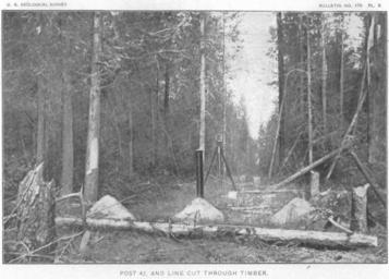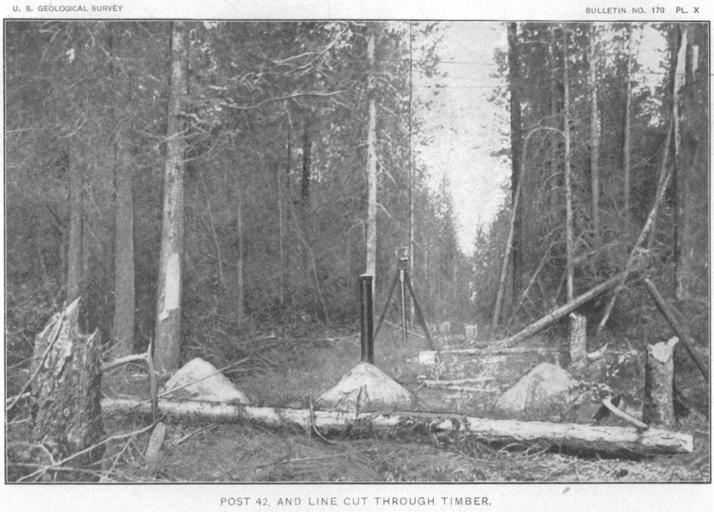 Keywords: USGS Idaho Montana 1900 Iron Post Monument 42 Instrument and Vista Cut.jpg en USGS Idaho Montana 1900 Iron Post Monument 42 Instrument and Vista Cut Survey Monuments 1900-2-21 12 00 00 United States Government Printing Office United States Geological Survey No 170 Department of the Interior 48 579328 -116 050639 USGS Survey of the Boundary Line Between Idaho and Montana from the International Boundary to the Crest of the Bitterroot Mountains Surveyed in 1897-1898 Bulletin of the United States Geological Survey No 170 Department of the Interior Printed in 1900 by US Government Printing Office Photographic and Drawn Plates images of the field work of the survey Stone Survey Monuments Iron Post Survey Monuments Placed into the Public Domain by government of USA Printed more than 114 years prior to time of upload PD-USGov Wikipedia Summer of Monuments United States Geological Survey markers Surveying in the United States Uploaded with UploadWizard |