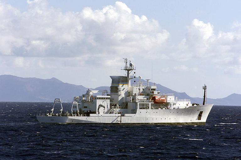 Keywords: USNS Sumner (T-AGS 61).jpg A starboard side view of the PATHFINDER CLASS SURVEYING SHIP USNS SUMNER T-AGS 61 underway off the coast of Hawaii HI during recovery operations for the Japanese fishing vessel Ehime Maru http //www dodmedia osd mil/Assets/Still/2003/Navy/DN-SD-03-12715 JPEG 2001-08-26 PD-USGov-Military-Navy USNS Sumner T-AGS-61 Sumner |