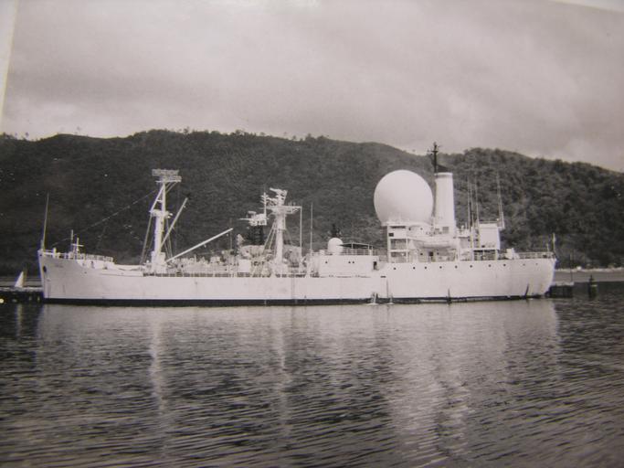 Keywords: USNS Sword Knot (T-AGM-13) in Trinidad.jpg en USNS Sword Knot T-AGM-13 docked in Trinidad http //www flickr com/photos/28155983 N07/4432444961/in/photostream/ 1966 U S Navy/GM3 Wirth Public domain PD-USGov-Military-Navy USNS Sword Knot T-AGM-13 |