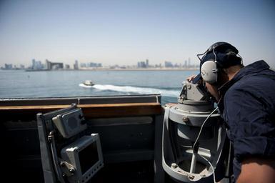 | Keywords: USS Arleigh Burke operations 140426-N-WD757-091.jpg en Quartermaster Seaman Kevin Hopkins from Pearl River La tracks passing landmarks as the guided-missile destroyer USS Arleigh Burke DDG 51 arrives in Abu Dhabi United Arab Emirates for a regularly scheduled port visit Arleigh Burke is deployed in the U S 5th Fleet area of responsibility supporting maritime security operations and theater security cooperation efforts U S Navy photo by Mass Communication Specialist 2nd Class Carlos M Vazquez II/Released 2014-04-26 Petty Officer 3rd Class Carlos Vazquez II https //www dvidshub net/image/1303933 140426-N-WD757-091 2014-05-02 00 31 AT SEA PD-USGov-Military-Navy USS Arleigh Burke DDG-51 Images from DoD uploaded by Fæ |