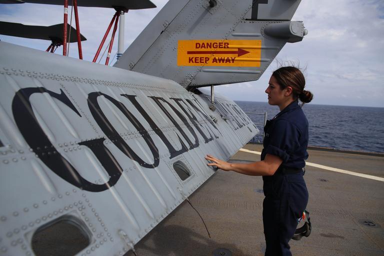 Keywords: USS Blue Ridge 130622-N-NN332-051.jpg en Aviation Structural Mechanic 2nd Class Erin Gallivan assigned to the Golden Falcons of Helicopter Sea Combat Squadron TWELVE Detachment ONE inspects an MH-60S Sea Hawk helicopter aboard U S 7th Fleet flagship USS Blue Ridge Blue Ridge is on patrol in the Indian Ocean with Marines from Fleet Antiterrorism Security Team Pacific and embarked 7th Fleet staff 2013-06-22 HSC-12 https //www dvidshub net/image/958964 130622-N-NN332-051 2013-06-22 07 30 USS BLUE RIDGE LCC 19 AT SEA PD-USGov-Military-Navy MH-60S Seahawk Fleet Anti-Terrorism Security Team Pacific USS Blue Ridge LCC-19 Images from DoD uploaded by Fæ |