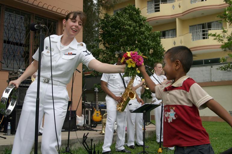 Keywords: USS Blue Ridge Sailors visit with Thai children DVIDS88134.jpg en Petty Officer 3rd Class Nina M Church receives a flower from a child attending a U S 7th Fleet Band performance at the Fountain of Life Center Church and other members of the band are embarked aboard the amphibious command ship USS Blue Ridge and performed a series of concerts during a port visit to Laem Chabang Thailand 2008-05-02 U S Navy photo/Petty Officer 2nd Class Jesse Carmona https //www dvidshub net/image/88134 080502-N-+++++-003 2008-05-12 22 21 PATTAYA TH PD-USGov-Military-Navy Pattaya USS Blue Ridge LCC-19 Images from DoD uploaded by Fæ Flowers in Thailand |