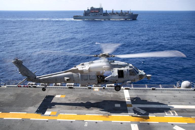 | Keywords: USS Bonhomme Richard conducts a replenishment-at-sea. (28739746213).jpg PACIFIC OCEAN Aug 31 2016 An MH-60S Sea Hawk assigned to Helicopter Sea Combat Squadron HSC 25 takes off from the flight deck of amphibious assault ship USS Bonhomme Richard LHD 6 in transit to Military Sea Command dry cargo and ammunition ship USNS Charles Drew T-AKE 10 during a replenishment at sea RAS Bonhomme Richard flagship of the Bonhomme Richard Expeditionary Strike Group is operating in the U S 7th Fleet area of operations in support of security and stability in the Indo-Asia-Pacific region U S Navy photo by Mass Communication Specialist 2nd Class Diana Quinlan/Released 160831-N-WF272-154 Join the conversation http //www navy mil/viewGallery asp www navy mil/viewGallery asp http //www facebook com/USNavy www facebook com/USNavy http //www twitter com/USNavy www twitter com/USNavy http //navylive dodlive mil navylive dodlive mil http //pinterest com pinterest com https //plus google com plus google com https //www flickr com/photos/usnavy/28739746213/ USS Bonhomme Richard conducts a replenishment-at-sea 2016-08-31 09 55 https //www flickr com/people/56594044 N06 Official U S Navy Page from United States of America MC2 Diana Quinlan/Mass Communication Specialist/U S Navy Attribution License IPTC Caption-Abstract U S Navy photo PD-USGov-Military-Navy Official U S Navy Imagery https //flickr com/photos/56594044 N06/28739746213 2016-09-02 19 10 38 cc-by-2 0 160831-N-WF272-154 Navy Aboard USS Bonhomme Richard LHD-6 Files from the U S Navy Flickr stream MH-60S Seahawk in flight Photographs taken on 2016-08-31 USNS Charles Drew T-AKE-10 Vertical replenishment Taken with Nikon D4S |