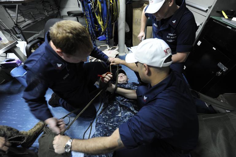 Keywords: USS Bonhomme Richard medical training team 120904-N-BL607-034.jpg en Sailors received surprised visits in their spaces from medical training teams to train them on basic first aid during a medical training drill aboard the forward-deployed amphibious assault ship USS Bonhomme Richard LHD 6 Bonhomme Richard is the lead ship of the only forward-deployed amphibious ready group U S Navy photo by Mass Communication Specialist 2nd Class William T Jenkins/Released 2012-09-04 Petty Officer 2nd Class William Jenkins https //www dvidshub net/image/657898 120904-N-BL607-034 2012-09-05 06 54 PHILIPPINE SEA PD-USGov-Military-Navy USS Bonhomme Richard LHD-6 Images from DoD uploaded by Fæ |