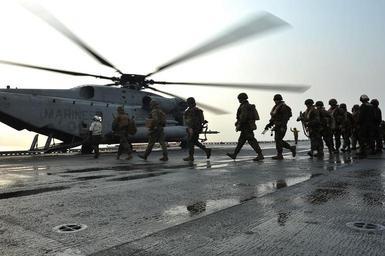 Keywords: USS Bonhomme Richard operations 130213-N-SO729-025.jpg en Marines board a CH-53E Super Stallion helicopter assigned to Marine Medium Helicopter Squadron HMM 262 aboard the amphibious assault ship USS Bonhomme Richard LHD 6 The Bonhomme Richard Amphibious Ready Group is deployed in the U S 7th Fleet area of responsibility and is taking part in Cobra Gold a Thai-U S co-sponsored multinational joint exercise designed to advance regional security by exercising a robust multinational force from nations sharing common goals and security commitments in the Asia-Pacific region U S Navy photo by Mass Communication Specialist 2nd Class Adam M Bennett/Released 2013-02-13 Petty Officer 3rd Class adam bennett https //www dvidshub net/image/867264 130213-N-SO729-025 2013-02-15 06 43 AT SEA PD-USGov-Military-Navy Sikorsky CH-53E Super Stallion USS Bonhomme Richard LHD-6 Images from DoD uploaded by Fæ |