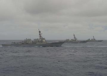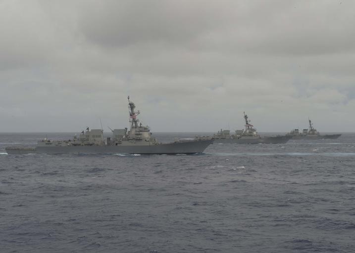 Keywords: USS Carl Vinson 140923-N-KB426-056.jpg en The Arleigh Burke-class guided-missile destroyers USS Sterett DDG 104 left USS Mustin DDG 89 middle and USS Stethem DDG 63 transit the Western Pacific Ocean during a photograph exercise PHOTOEX as part of Valiant Shield Sterett is underway as part of the Carl Vinson Carrier Strike Group Carl Vinson and its embarked air wing Carrier Air Wing 17 are on deployment in the U S 7th Fleet area of operations supporting Valiant Shield Valiant Shield is a U S -only biennial exercise in which participation will focus on the integration of joint training among U S forces U S Navy photo by Mass Communication Specialist 3rd Class James Vazquez/Released 2014-09-23 Petty Officer 3rd Class James Vazquez https //www dvidshub net/image/1565333 140923-N-KB426-056 2014-09-24 15 03 USS CARL VINSON AT SEA 4 PD-USGov-Military-Navy USS Carl Vinson CVN-70 USS Mustin DDG-89 USS Stethem DDG-63 Images from DoD uploaded by Fæ |
