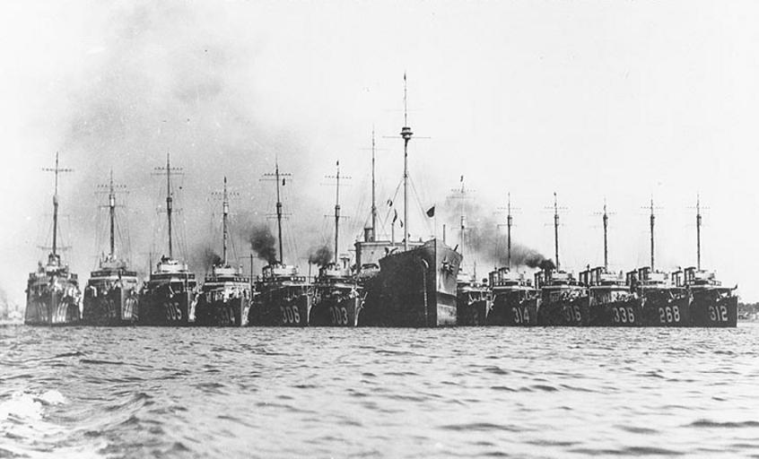 | Keywords: USS Cuyama (AO-3) with 12 destroyers in the early 1920s.jpg The U S Navy fleet oiler USS Cuyama AO-3 with twelve destroyers tied up alongside during the early 1920s The ships present include from left to right <br> USS Jacob Jones DD-130 ;<br> USS Hull DD-330 ;<br> USS Thompson DD-305 ;<br> USS Corry DD-334 ;<br> USS Kennedy DD-306 ;<br> USS Reno DD-303 ;<br> USS Cuyama AO-3 ;<br> USS Stoddert DD-302 ;<br> USS Yarborough DD-314 ;<br> USS Sloat DD-316 ;<br> USS Litchfield DD-336 ;<br> USS Shubrick DD-268 ;<br> USS Young DD-312 ; Official U S Navy photo http //www history navy mil/photos/images/h77000/h77258c htm NH 77258 from the U S Navy http //www history navy mil Naval History and Heritage Command s 1920 USN PD-USGov-Military-Navy USS Cuyama AO-3 ship 1916 USS Jacob Jones DD-130 USS Shubrick DD-268 USS Stoddert DD-302 USS Reno DD-303 USS Thompson DD-305 USS Kennedy DD-306 USS Young DD-312 USS Yarborough DD-314 USS Sloat DD-316 USS Hull DD-330 USS Corry DD-334 USS Litchfield DD-336 |