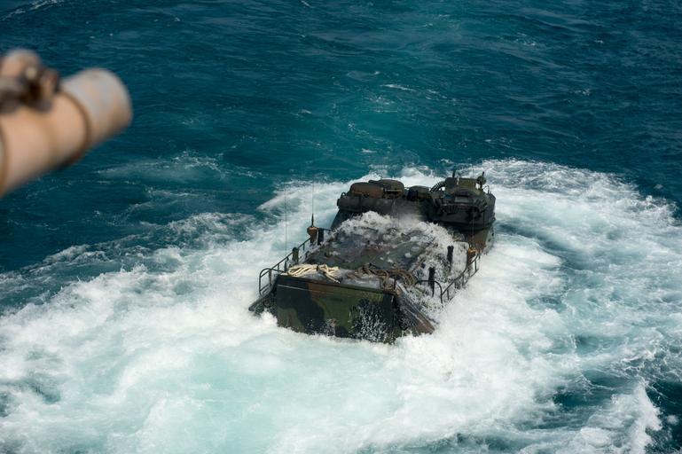 | Keywords: USS Denver supports Cobra Gold 2014 140214-N-IC565-027.jpg en A U S Marine assault amphibious vehicle drives out of the well deck of the amphibious transport dock ship USS Denver LPD-9 Feb 14 The Denver and the AAV participated in a demonstration of an amphibious assault during Exercise Cobra Gold 2014 which is a multinational exercise conducted annually to promote interoperability between participating nations The AAV is with Combat Assault Battalion 3rd Marine Division III Marine Expeditionary Force U S Navy photo by Mass Communication Specialist 3rd Class Bradley J Gee/Released 2014-02-14 Petty Officer 3rd Class Bradley Gee https //www dvidshub net/image/1168143 140214-N-IC565-027 2014-02-14 23 45 GULF OF THAILAND TH PD-USGov-Military-Navy USS Denver LPD-9 Images from DoD uploaded by Fæ |