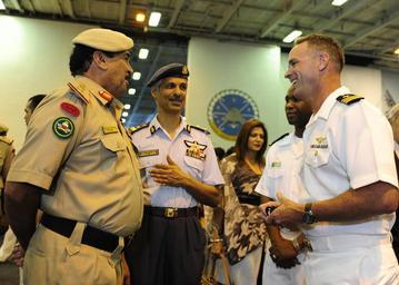 Keywords: USS Dwight D. Eisenhower on Deployment DVIDS173219.jpg en Cdr Mark Light and Ensign Jermaine Jemmott talk with Bahraini military officials during a reception aboard the aircraft carrier USS Dwight D Eisenhower during her historic port visit to the Kingdom of Bahrain The Eisenhower is the first nuclear-powered aircraft carrier to dock at the newly-completed Khalifa bin Salman Port The Eisenhower Carrier Strike Group is underway for a regularly scheduled deployment in support of the ongoing rotation of forward-deployed forces to support Operation Enduring Freedom maritime security operations and operate in international waters across the globe 2009-05-17 https //www dvidshub net/image/173219 090517-N-+++++-274 2009-05-20 04 52 USS DWIGHT D EISENHOWER AT SEA PD-USGov-Military-Navy Operation Enduring Freedom USS Dwight D Eisenhower CVN-69 Images from DoD uploaded by Fæ |