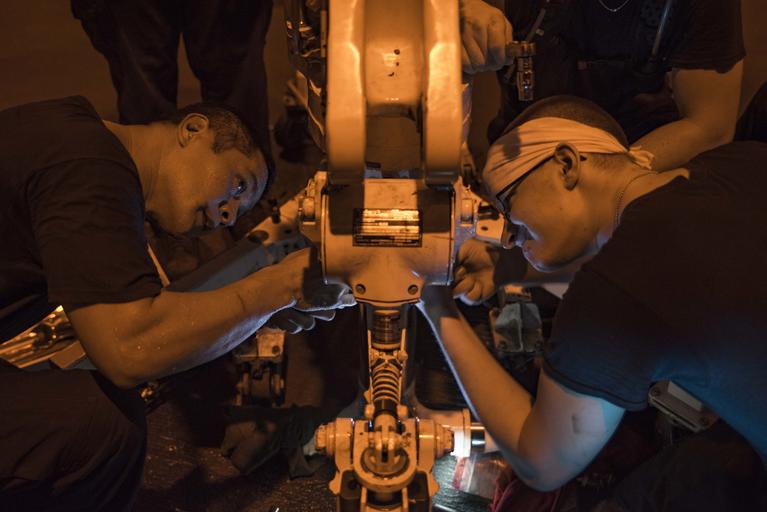 Keywords: USS Dwight D. Eisenhower Deployment 160901-N-WC455-216.jpg en 160901-N-WC455-216 ARABIAN GULF Sept 1 2016 Aviation Structural Mechanic 2nd Class Marlon Bartolome left from Oak Harbor Wash and Aviation Structural Mechanic 2nd Class Corey Bittner from Mentor Ohio replace a strut on a nose landing strut assembly in the hangar bay of the aircraft carrier USS Dwight D Eisenhower CVN 69 Ike Ike and its Carrier Strike Group are deployed in support of Operation Inherent Resolve maritime security operations and theater security cooperation efforts in the U S 5th Fleet area of operations U S Navy photo by Mass Communication Specialist Seaman Joshua Murray <br>Unit USS Dwight D Eisenhower CVN 69 2016-09-01 Seaman Apprentice Joshua Murray https //www dvidshub net/image/2836724/uss-dwight-d-eisenhower-deployment 160901-N-WC455-216 2016-09-07 00 54 PERSIAN GULF PD-USGov-Military-Navy USS Dwight D Eisenhower CVN-69 Images from DoD uploaded by Fæ |