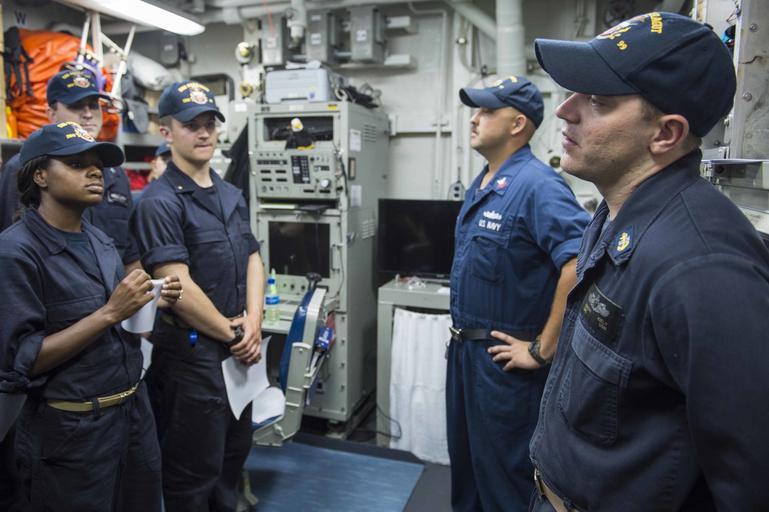 Keywords: USS Farragut Midshipmen training 150701-N-VC236-069.jpg en 150701-N-VC236-069 PORT KHALIFA Abu Dhabi - Midshipmen 3rd Class Lynette Sivells from Launeeton N Y and Eric DeWitte from Duluth Minn observe gunnery divisional training aboard the guided-missile destroyer USS Farragut Farragut is deployed to the U S 5th Fleet area of operations as part of Theodore Roosevelt Carrier Strike Group supporting Operation Inherent Resolve strike operations in Iraq and Syria as directed maritime security operations and theater security cooperation efforts in the region 2015-07-01 July 1 2015 https //www dvidshub net/image/2047010 150701-N-VC236-069 2015-07-07 00 04 PORT KHALIFA UA 3 PD-USGov-Military-Navy USS Farragut DDG-99 Images from DoD uploaded by Fæ |