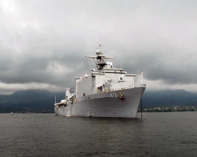 Keywords: USS FortMcHenry01.jpg en The amphibious dock landing ship USS Fort McHenry LSD 43 sits anchored off of the coast of Limbe Africa Partnership Station APS is aboard Fort McHenry conducting training for Cameroonian Sailors on maritime safety and security APS is scheduled to bring international training teams to Senegal Liberia Ghana Cameroon Gabon and Sao Tome and Principe and will support more than 20 humanitarian assistance projects in addition to hosting information exchanges and training with partner nations during its seven-month deployment fr L'USS Fort McHenry au mouillage au large de Limbe Cameroun http //www navy mil/management/photodb/photos/071204-N-8933S-156 jpg RJ Stratchko 2007-12-04 PD-USGov-Military-Navy General views of USS Fort McHenry LSD-43 Africa Partnership Station Ships at anchor |