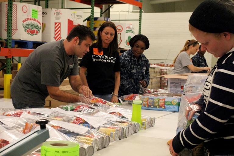 Keywords: USS George H.W. Bush 120920-N-FE409-045.jpg en Miles Monroe left Backpack Program production coordinator demonstrates the correct order to package food items to U S Sailors assigned to the aircraft carrier USS George H W Bush CVN 77 at the Foodbank of Southeastern Virginia in Norfolk Va Sept 20 2012 The Sailors helped Foodbank employees package meals to be given to needy children at Hampton Roads schools for the students to take home on weekends U S Navy photo by Mass Communication Specialist 3rd Class Michael Smevog/Released 2012-09-20 Seaman Apprentice J Michael Smevog https //www dvidshub net/image/773456 120920-N-FE409-045 2012-11-03 23 51 NORFOLK VA US PD-USGov-Military-Navy USS George H W Bush CVN-77 Images from DoD uploaded by Fæ |