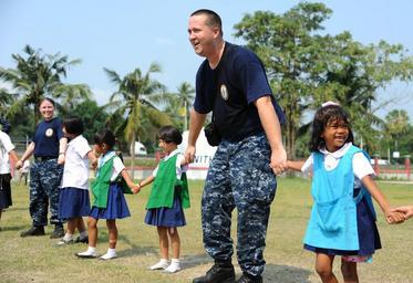 Keywords: USS Germantown sailors play with children during community service project 120223-N-LP801-220.jpg en Engineman 3rd Class Victoria Moore and Lt j g Robert Hecox assigned to the forward-deployed amphibious dock landing ship USS Germantown hold hands with Thai children while participating in a community service project during a port visit to Thailand Germantown with embarked elements of the 31st Marine Expeditionary Unit is underway after participating in exercise Cobra Gold 2012 an annual Thai-U S co-sponsored joint and multinational exercise designed to advance security throughout the Asia-Pacific region and enhance interoperability with participating nations U S Navy photo by Mass Communication Specialist Seaman Raul Moreno Jr 2012-02-23 Seaman Raul Moreno Jr https //www dvidshub net/image/532122 120223-N-LP801-220 2012-02-28 03 27 LAEM CHABANG TH PD-USGov-Military-Navy 31st Marine Expeditionary Unit Images from DoD uploaded by Fæ |