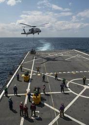 Keywords: USS Green Bay operations 150311-N-EI510-038.jpg en 150311-N-EI510-038 EAST CHINA SEA March 11 2015 An MH-60S Seahawk Helicopter attached to the Island Knights of the Helicopter Sea Combat Squadron HMS 25 drops supplies on the flight deck of the forward deployed amphibious transport dock ship USS Green Bay LPD 20 Green Bay is part of the Bonhomme Richard Amphibious Ready Group ARG and along with the embarked 31st Marine Expeditionary Unit MEU is currently conducting an Amphibious Integration Training AIT exercise U S Navy photo by Mass Communication Specialist 3rd Class Scott Barnes/Released 2015-03-11 Seaman Scott Barnes https //www dvidshub net/image/1812810 150311-N-EI510-038 2015-03-13 03 16 USS GREEN BAY EAST CHINA SEA AT SEA PD-USGov-Military-Navy MH-60S Seahawk 31st Marine Expeditionary Unit USS Green Bay LPD-20 Images from DoD uploaded by Fæ |