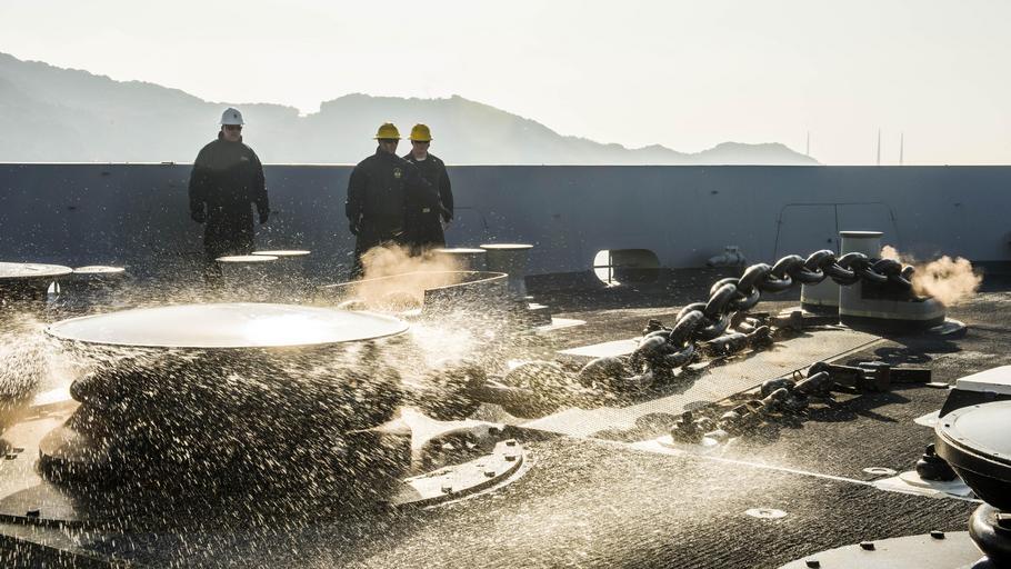 | Keywords: USS Green Bay operations 150302-N-KE519-025.jpg en 150302-N-KE519-025 SASEBO Japan Mar 2 2015 - Sailors aboard the forward deployed San Antonio-class amphibious transport dock ship USS Green Bay LPD 20 lower the ship's port side anchor during an anchoring evolution Green Bay is replacing the decommissioned Austin-class amphibious transport dock ship USS Denver LPD 9 previously forward-deployed to Sasebo and will enhance amphibious presence in the U S 7th Fleet as part of the U S Navy's long-range plan to send the most advanced and capable units to the Asia-Pacific region U S Navy photo by Mass Communication Specialist 3rd Class Edward Guttierrez III/Released 2015-03-02 Petty Officer 3rd Class Edward Guttierrez III https //www dvidshub net/image/1794090 150302-N-KE519-025 2015-03-02 21 40 FLEET ACTIVITIES SASEBO JP PD-USGov-Military-Navy USS Denver LPD-9 USS Green Bay LPD-20 Images from DoD uploaded by Fæ |