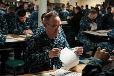 Keywords: USS John C. Stennis 140114-N-ZA585-027.jpg en Interior Communications Electrician 1st Class James Duffy tears open a plastic security wrapper on the Chief Petty Officer exam aboard a barge in Naval Base Kitsap Bremerton USS John C Stennis is currently undergoing a Docking Planned Incremental Availability Maintenance at Puget Sound Naval Shipyard and Incremental Maintenance Facility 2014-01-14 CVN 74 https //www dvidshub net/image/1150430 140114-N-ZA585-027 2014-01-14 18 43 BREMERTON WA US PD-USGov-Military-Navy Naval Base Kitsap Images from DoD uploaded by Fæ |