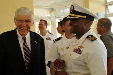 Keywords: USS Kearsarge begins 13-day humanitarian, civic assistance mission DVIDS120485.jpg en Capt Walter Towns commanding officer of the amphibious assault ship USS Kearsarge speaks with U S Ambassador Robert Fannin during a welcoming ceremony for the ship as it begins a 13-day humanitarian/civic assistance mission in the country Kearsarge is supporting the Caribbean Phase of the humanitarian/civic assistance mission Continuing Promise 2008 an equal partnership mission between the United States Canada the Netherlands Brazil Nicaragua Panama Columbia Dominican Republic Trinidad and Tobago and Guyana 2008-10-03 Petty Officer 3rd Class David Danals https //www dvidshub net/image/120485 081003-N-+++++-340 2008-10-07 00 43 SANTO DOMINGO DO PD-USGov-Military-Navy USS Kearsarge LHD-3 Images from DoD uploaded by Fæ |