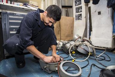 Keywords: USS Kearsarge operations 151123-N-KW492-087.jpg en 151123-N-KW492-087 ARABIAN GULF Nov 23 2015 Electrician's Mate Fireman Kevin Reyes from Bridgeport Wash conducts maintenance on a water line security light aboard the amphibious assault ship USS Kearsarge LHD 3 Kearsarge is the flagship for the Kearsarge Amphibious Ready Group ARG and with the embarked 26th Marine Expeditionary Unit MEU is deployed in support of maritime security operations and theater security cooperation efforts in the U S 5th Fleet area of operations U S Navy photo by Mass Communication Specialist Seaman Apprentice Ryre Arciaga/Released <br>Unit USS Kearsarge LHD 3 2015-11-23 Ryre Arciaga https //www dvidshub net/image/2304001/uss-kearsarge-operations 151123-N-KW492-087 2015-11-24 05 47 USS KEARSARGE ARABIAN GULF AT SEA PD-USGov-Military-Navy 26th Marine Expeditionary Unit USS Kearsarge LHD-3 Images from DoD uploaded by Fæ |