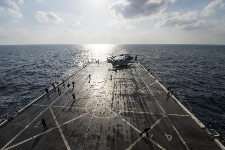 Keywords: USS New York operations 150220-N-XG464-076.jpg en 150220-N-XG464-076 ARABIAN GULF - Sailors stationed aboard the amphibious transport dock ship USS New York spray down the flight deck during a fresh water wash down Feb 24 2015 New York is a part of the Iwo Jima Amphibious Ready Group and with the embarked 24th Marine Expeditionary Unit is deployed in support of maritime security operations and theater security cooperation efforts in the U S 5th Fleet area of operations 2015-02-20 Feb 20 2015 https //www dvidshub net/image/1788511 150220-N-XG464-076 2015-02-26 17 18 USS NEW YORK ARABIAN GULF AT SEA PD-USGov-Military-Navy 24th Marine Expeditionary Unit Images from US Navy location Iwo Jima Japan Images from DoD uploaded by Fæ |