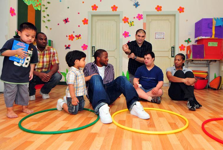 Keywords: USS Pearl Harbor DVIDS317536.jpg en Petty Officer 3rd Class Ralph Oliver religious programs specialist far left Petty Officer 3rd Class Stephen Williams damage controlman center Lt Stephen Zachary chaplain and Seaman Kinita Walters logistics specialist far right spend time with children at the RIA Institute in Manama Bahrain Sailors from the amphibious dock landing ship USS Pearl Harbor LSD 52 participated in a community relations project at the RIA Institute playing various games trying yoga and swimming Pearl Harbor is part of Peleliu Amphibious Ready Group supporting maritime security operations and theater security cooperation efforts in the U S 5th Fleet area of responsibility 2010-08-12 Petty Officer 2nd Class Michael Russell https //www dvidshub net/image/317536 100812-N-+++++-037 2010-09-12 02 41 BH PD-USGov-Military-Navy USS Pearl Harbor LSD-52 Manama Images from DoD uploaded by Fæ |