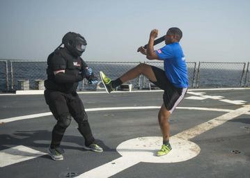 Keywords: USS STOUT (DDG 55) DEPLOYMENT 2016 161003-N-GP524-508.jpg en 161003-N-GP524-508 ARABIAN GULF Oct 3 2016 Ensign Carlos Ramos right conducts defensive fighting techniques after being sprayed with oleoresin capsicum during a security reaction forces-basic training evolution aboard the guided-missile destroyer USS Stout DDG 55 Stout deployed as part of the Eisenhower Carrier Strike Group is supporting maritime security operations and theater security cooperation efforts in the U S 5th Fleet area of operations U S Navy photo by Petty Officer 3rd Class Bill Dodge Unit Navy Media Content Services DVIDS Tags SAR; Search and Rescue; formation; ocean; transit; Bahrain; RAS; USNS Pecos ; GQ; general quarters; Arleigh Burke-class; America; underway; CIWS; 6th Fleet; guided-missile destroyer; Manama ; forward deployed; Memorial Day; USS Stout DDG 55 ; ship; SUEZ CANAL; Navy; COMREL; Sailor; community relations; destroyer; replenishment-at-sea; U S Navy; 5th Fleet; deployment; MC; Stout; USS Stout; DDG 55; Lt Michael Murphy; NMCS; DVIDS Bulk Import; Mass Communication Specialist 3rd Class Bill Dodge; MC3 Bill Dodge; Murph Challenge; ARGONAUT 2016; Sailors giving back 2016-10-03 Petty Officer 3rd Class William Dodge https //www dvidshub net/image/2903953/uss-stout-ddg-55-deployment-2016 161003-N-GP524-508 2016-10-07 00 11 PERSIAN GULF PD-USGov-Military-Navy Manama Pepper sprays USS Stout DDG-55 Images from DoD uploaded by Fæ |