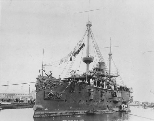 | Keywords: USS Texas postwar 1898.jpg USS Texas 1895-1911 ready for post-war drydocking at the New York Navy Yard 3 August 1898 http //www history navy mil/photos/sh-usn/usnsh-t/texas htm Photo NH 74104 1898-08-03 PD-USGov-Military-Navy USS Texas ship 1892 Retouched by Mbdortmund |