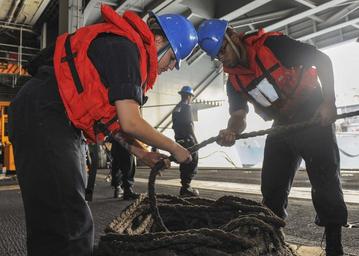 Keywords: USS Theodore Roosevelt operations 150708-N-CQ428-064.jpg en 150708-N-CQ428-064 ARABIAN GULF Seaman Michael Czuprynsk from Suffolk Va and Seaman Kassandra Benson from Phoenix heave line aboard the aircraft carrier USS Theodore Roosevelt during an underway replenishment with the Military Sealift Command fast combat support ship USNS Arctic Theodore Roosevelt is deployed in the U S 5th Fleet area of operations supporting Operation Inherent Resolve strike operations in Iraq and Syria as directed maritime security operations and theater cooperation efforts in the region <br>Unit Navy Media Content Services 2015-07-08 July 8 2015 https //www dvidshub net/image/2055026/uss-theodore-roosevelt-operations 150708-N-CQ428-064 2015-07-11 02 34 USS THEODORE ROOSEVELT ARABIAN SEA PD-USGov-Military-Navy USS Theodore Roosevelt CVN-71 Images from DoD uploaded by FĂŚ |