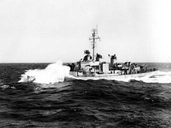 Keywords: USS Wallace L. Lind (DD-703) off Korea in 1951.jpg The U S Navy destroyer USS Wallace L Lind DD-703 plows through rough seas off Korea after rescuing Lt Bernard F McDermott of Composite Squadron 61 VC-61 <br> Note the photo is dated 16 April 1951 Other sources indicate that McDermott was forced to ditch his Vought F4U-5P Corsair in Wonsan Harbour Korea on 20 February 1951 during his 11th photo mission Douglas E Campbell FLIGHT CAMERA ACTION The History of U S Naval Aviation Photography and Photo-Reconnaissance Lulu com 2014 ISBN 9781304471734 p 353 He was the Officer-in-Charge of VC-61 Det F aboard the aircraft carrier USS Valley Forge CV-45 McDermott was rescued by USS Wallace L Lind after spending 74 minutes in the -5°C cold water His condition was good although he suffered from shock due to the cold Official U S Navy photo http //www history navy mil/our-collections/photography/numerical-list-of-images/nara-series/80-g/80-G-420000/80-G-427807 html 80-G-427807 from the U S Navy http //www history navy mil Naval History and Heritage Command 1951 U S Navy PD-USGov-Military-Navy USS Wallace L Lind DD-703 Korean War in 1951 |
