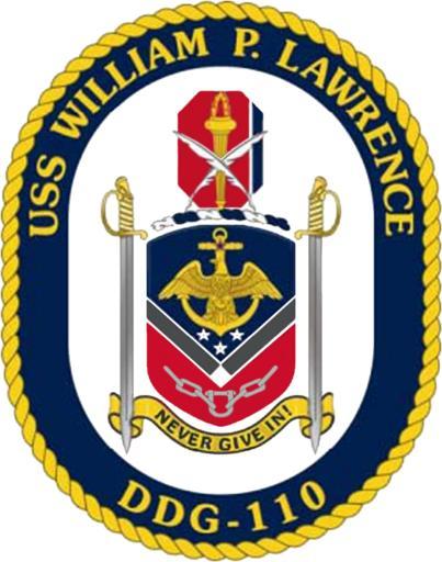 Keywords: USS William P. Lawrence.png en Emblem of teh USS William P Lawrence DDG-110 2011-05-25 United States Army Institute of Heraldry Member of the Armed Forces of the United States PD-USGov Shield Dark blue is the color traditionally associated with the Navy representing the sea The dark gray split chevron on the white chevron alludes to VADM Lawrence ™s mission to lead a flak suppression section during a raid in North Vietnam Upon taking enemy fire his aircraft tail section separated forcing him to eject where he became a prisoner in Hanoi illustrated by the shackbolt The six chain links indicate the years spent as a prisoner of war The anchor denotes naval strength The golden eagle highlights VADM Lawrence as a man of courage to resist his captors while suffering torture and beatings The combination of the eagle and anchor symbolize the VADM ™s career as a Naval aviator suggesting his service as a test pilot becoming the first to fly twice the speed of sound and final candidate for the Mercury space program The stars represent VADM Lawrence ™s strength of character implying the award of two Bronze stars and the Purple Heart The three silver stars represent the highest rank achieved command of the 3rd Fleet as well as the three Silver Stars awarded for exceptional heroism CREST The Aegis shield emphasizes the modern weaponry and the ARLEIGH BURKE class to which the ship belongs The shield reflects the colors of the Tennessee state flag the birthplace of VADM Lawrence The golden enflamed torch represents achievement and enlightenment when VADM Lawrence created the Midshipmen honor concept as the President of his class at United States Naval Academy in 1950 and his remarkable performance as a scholar/athlete The quills pens allude to knowledge signifying his appointment as Superintendent of the Naval Academy and the poem which he mentally composed while in solitary confinement as a prisoner of war which was adopted as the Tennessee state poem in 1973 MOTTO Never give in SUPPORTERS The officer swords honor the proud military heritage of the Lawrence family and their service to the United States of America Uploaded with UploadWizard United States Navy destroyer emblems 110 USS William P Lawrence DDG-110 |
