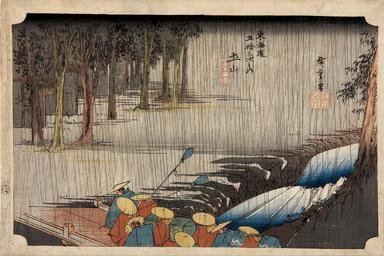 Keywords: Utagawa Hiroshige - Tsuchiyama - Spring Rain (Tsuchiyama haru no ame) - from the set 'Fifty-three Stations of the Tokaid... - Google Art Project.jpg 1797 Edo 1797 1858 Edo 1858 Utagawa 28030386 HIROSHIGE Japan 1797 - 1858 /collection/art-gallery-of-south-australia/artwork/tsuchiyama-spring-rain-tsuchiyama-haru-no-ame-from-the-set-fifty-three-stations-of-the-tokaido-tokaido-gojusan-tsugi-no-uchi-utagawa-hiroshige/28030387/ Creator Utagawa Hiroshige /artist/hiroshige-and C5 8D/4131151/ 4131151 /collection/art-gallery-of-south-australia/ Art Gallery of South Australia 27864259 http //artgallery sa gov au/ /collection/art-gallery-of-south-australia/artwork/tsuchiyama-spring-rain-tsuchiyama-haru-no-ame-from-the-set-fifty-three-stations-of-the-tokaido-tokaido-gojusan-tsugi-no-uchi-utagawa-hiroshige/28030387/ 1821 c 1831-34 nishiki-e oban colour woodblock print 22 4 28030387 False 1844 image 20054G26 http //www artgallery sa gov au/agsa/home/Collection/searchResult jsp main acc accNo 20054G26 http //www artgallery sa gov au/agsa/home/About/docs/copyright html Art Gallery of South Australia Gift of Brian and Barbara Crisp in memory of their son Andrew 2005 Print 1820 1850 Edo Tokyo w35 x h22 cm c 1831-34 False 1 49707602339181 © Art Gallery of South Australia Object tsuchiyama-spring-rain-tsuchiyama-haru-no-ame-from-the-set-fifty-three-stations-of-the-tokaido-tokaido-gojusan-tsugi-no-uchi-utagawa-hiroshige Tsuchiyama - Spring Rain Tsuchiyama haru no ame from the set 'Fifty-three Stations of the Tokaido Tokaido gojusan tsugi no uchi ' t 35 nishiki-e oban colour woodblock print special url_id ZwE2sTk-HtYoBg PD-old-100-1923 1858 Utagawa Hiroshige Google Art Project works by Utagawa Hiroshige |