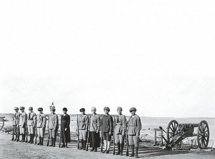 | Keywords: Uuraan naiskaarti 1918.jpg en 1918 Finnish Civil War Uuras Female Red Guard at the Fortress of Uuras fi 1918 sisällissodan Uuraan naiskaarti kuvattuna Uuraan linnoituksessa 1918 http //www hs fi/arviot/kirja/a1383972847514 author other versions PD-Old Female Red Guards of the Finnish Civil War 87-mm light field gun M1877 Fort Trångsund |