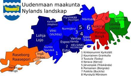 Keywords: Uusimaa kunnat.svg fi Uudenmaan maakunnan seutukunnat kaupungit tummempi ja kunnat vaaleampi Oranssi on Raaseporin sininen Helsingin punainen Porvoon ja vihrea Loviisan seutukunta sv Nylands landskap med ekonomisk regioner stader mörkare och kommuner ljusare Orange är Raseborgs blå Helsingfors röd Borgås och grön Lovisas ekonomisk region en Uusimaa region with sub-regions cities darker and municipalities lighter Orange is Raseborg's blue Helsinki's red Porvoo's and green Loviisa's sub-region own Canukki 2011-01-22 Maps of Uusimaa Municipalities in Uusimaa |