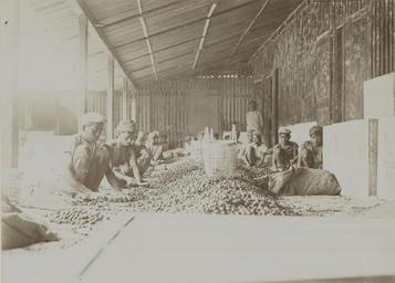 | Keywords: UvA-BC 300.287 - Siboga - notenpakhuis op Banda.jpg nl Academische Collecties http //academischecollecties nl/search identifier 300 287 1899-1900 Siboga-expeditie naar Nederlands Oost-Indiƫ onder leiding van Max Wilhelm Carl Weber Pakhuis waarin de nootmuskaatnoten worden verwerkt en verpakt in balen Op de achtergrond in de hoek waarschijnlijk de perkenier between 1899-03 1900-02 Academische Collecties http //academischecollecties nl/search text siboga;f1-type voorwerp;view list Institution Special Collections of the University of Amsterdam UvA-BC Expedition Wikipedia Creator Unknown According to several sources among others cite book Weber-van Bosse Anna Antoinette 1904 Een jaar aan boord H M Siboga Leiden E J Brill 2 10957037 the main photographer of the Siboga Expedition was Creator Hugo Frederik Nierstrasz Authorship of individual photographs is however not known with certainty and other crew members of the expedition also took photographs Therefore it is safest to assume anonymous authorship Custom license marker 2014 06 27 Anonymous-EU Photographs of the Siboga Expedition Uploaded with UploadWizard Bandanaira Nutmeg cultivation |