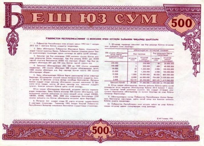 | Keywords: Uzbek-1992-bond-revers.jpg ru Облигация узбекского внут еннего выиг ышного займа 1992 года Реве с 2015-06-17 http //www avito ru П авительство Республики Узбекистан Government of the Republic of Uzbekistan Ўзбекистон Республикаси хукумати PD-UZ-exempt other versions Uploaded with UploadWizard Bonds of Uzbekistan |