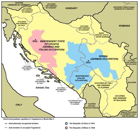 Keywords: Užice and Bihać Republics.png en Short-lived partisan republics in Yugoslavia in World War II the Republic of Užice in 1941 and the Republic of Bihać in 1942 sh Kratkotrajne partizanske republike u Jugoslaviji u vreme Drugog svetskog rata Užička republika 1941 i Bihaćka republika 1942 own PANONIAN 2012 Cc-zero References Borders of the Republic of Užice are made in accordance with this source Povijesni atlas za osnovnu školu Kartografija - Tlos - Zagreb Zagreb 1975 authors of the atlas were Dr Josip Lučić and Prof Blagota Drašković; associates were Prof Ivan Kampuš Prof Željka Kargačin Prof Ivo Makek Prof Olga Salzer and Prof Tomaž Weber; editors were Prof Zdravko Prelčec and Mr Dragutin Pavličević; reviewers were Prof Dr Igor Karaman and Dr Ivan Jelić Borders of the Republic of Bihać are made in accordance with this source Denis Šehić - Demir Šehić Istorijski atlas sveta Beograd 2007 Borders of Axis partition of Yugoslavia are made in accordance with these sources Istorijski atlas Geokarta Beograd 1999 Školski istorijski atlas Zavod za izdavanje udžbenika SR Srbije Beograd 1970 Povijesni atlas Učila - Zagreb Zagreb 1971 Denis Šehić - Demir Šehić Istorijski atlas sveta Beograd 2007 The Times History of Europe Times Books London 2002 Richard Overy The Times History of the 20th Century Times Books London 2004 The Times Atlas svjetske povijesti Cankarjeva založba Ljubljana - Zagreb 1986 Tim Džuda Srbi - istorija mit i razaranje Jugoslavije Beograd 2003 Džon R Lempi Jugoslavija kao istorija Beograd 2004 Fransisko Veiga Balkanska zamka 1804-2001 Beograd 2003 Dr Tomislav Bogavac Nestajanje Srba Niš 1994 Valter Manošek Holokaust u Srbiji Beograd 2007 http //www terra es/personal7/jqvaraderey/194145fc gif http //www svetskirat net/slike/razbijanje/zazbijanje_jugoslavije_1941 jpg http //www marxists org/subject/yugoslavia/images/maps/1941-dismemberment jpg http //www ushmm org/lcmedia/map/lc/image/yug71020 gif http //www srpska-mreza com/MAPS/Yugoslavia/YU-Nazi-division jpg http //www cartoko com/content/wp-content/uploads/2010/05/Yugoslavia_1992_p038_CtryStudy jpg http //www arhivyu gov rs/Data/Images/06_karta_b jpg http //terkepek adatbank transindex ro/kepek/netre/211 gif Maps of Yugoslavia during World War II Maps of Serbia during World War II Maps of Montenegro during World War II Maps of the Independent State of Croatia Maps of the history of Bosnia and Herzegovina in modern times Maps of the history of Republika Srpska Republic of Užice Republic of Bihać |