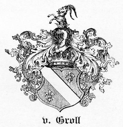 | Keywords: V Groll - Coat of Arms.png blazon of de Familie von Groll en Groll Family fr Famille de Groll de Im rothen Schild ein silberner Rechtsbalken von je einer silbernen Lillie beseitet Auf dem Schilde die Freiherrnkrone darüber ein gekrönter Helm aus welchem ein silberner Steinbock mit rothausgeschlagener Zunge hervorwächst Helmdecken aussen roth und innen silbern Der nicht freiherrliche Zweig der Familie führt dasselbe Wappen mit Weglassung der Krone über dem Schilde en Gules red a band argent silver accompanied by two fleur-de-lis of the same On the shield the baron's coronet; a crowned helmet above; Crest an ibex goat silver issuant langued of red Red mantling the outside and inside silver The non-baronial branch of the family carry the same coat of arms with the omission of the crown above the shield fr De gueules à la bande d'argent accompagnée de deux fleurs-de-lis du même Casque couronné Cimier un bouquetin issant d'argent langué de gueules Note Rietstap omis la branche des barons de la famille ce qui ajouterait couronne de baron en entre le bouclier et le casque de Citation Becke-Klüchtzner Edmund von der Der Adel des Königreichs Württemberg Stuttgart Verlag von W Kohlhammer 1879 340 en Translation from original source texts german and french Still looking for an online copy of Cite book Rolland V Rolland H V ; Rietstap J B Heraldic Book Co Baltimore V H V Rolland's illustrations to the Armorial général by J B Rietstap 1967 Vol 3 1903 978-0900455209 v Groll Freiherrndiplom v 15 Juni 1880 für den K  Flügeladjutanten Oberstlieutnant Karl v Groll v d Becke-Kl S 340 <ref name Becke-Kl> cite book Becke-Klüchtzner Edmund von der Der Adel des Königreichs Württemberg neu bearbeitetes Wappenbuch mit genealogischen und historischen Notizen 1879 Verlag von W Kohlhammer Stuttgart 340 </ref> Geneal Taschenbuch der adel Häuser Brünn 1884 S 139 “40 <ref name Brunn > cite journal Karl v Groll Genealogisches Taschenbuch der adeligen Häuser 1884 1884 IX Jahrgang 139 “40 Brünner Buschak und Irrgang </ref> Gritzner  Standeserhebungen  S  854 <ref name Gritzner > citation Standes-Erhebungen und Gnaden-Acte deutscher Landesfürsten während der letzten drei Jahrhunderte Görlitz C A Starke 1880-81 854 Gritzner Maximilian </ref> bild 873 Nach v d Becke-Kl von Groll Title of Baron conferred on June 15 1880 for the King's aide-de-camp Lieutenant Colonel Karl von Groll v d Becke-Kl pg 340 <ref name Becke-Kl /> Genealogical Handbook of noble houses Brünn 1884 pp 139 “40 <ref name Brunn /> Gritzner  Standeserhebungen pg 854 <ref name Gritzner /> image 873 According to v d Becke-Kl 1892 Otto von Alberti 1834-1904 Cropped from Württembergisches Adels- und Wappenbuch 4 Heft žFelber “ Hailfingen Page 247 other versions Alberti Wappenbuch H04 S 0247 jpg <gallery> File Groll Coat of Arms - Full svg Groll Coat of Arms - Full File Groll Coat of Arms - Shield Only svg Groll Coat of Arms - Shield File 3 Grolls - Rolland Illustrations of Rietstap png Three Groll Coats of Arms </gallery> Custom license marker 2012 02 21 Grolltech PD-old-100 References Reflist DEFAULTSORT Groll Coats of arms of Groll Family 2 fleurs-de-lis argent in heraldry Goats in crest Ibexes in heraldry |