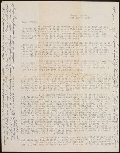 Keywords: V.W. Peters, letter, 1935.10.7, Songdo, Korea, to Father, Rosemead, California, USA (Peters 351007~1).jpg en <br> V W Peters letter 1935 10 7 Songdo Korea to Father Rosemead California USA Includes Margaret Hess letter s d Chemulpo Korea to V W Peters; Korean newspaper clipping including a photograph of a boat Legacy Record ID kda-m441 Filename Peters_351007~1; Peters_351007~2; Peters_351007_letter~1; Peters_351007_letter~2; Peters_351007_newspaper~1; Peters_351007~3; Peters_351007~4 Access Conditions Send requests to address or e-mail given Phone 213 740-1772 Coverage date 1935 Part of collection Korean Digital Archive Type texts; images Part of subcollection The Reverend V W Peters Collection Publisher of the Digital Version University of Southern California Libraries Format 4 2 2 pages ; typed handwritten 22 x 28 cm + 1 envelope + 1 newspaper clipping Author Peters Victor Wellington 1902-; Hess Margaret Recipient Peters Fredus N Dr ; Peters Victor Wellington 1902- Repository Name USC Libraries East Asian Library Korean Heritage Library Language English; Korean Rights The University of Southern California has licensed digital access to this material from Dr Victor Wellington Peters whose estate retains the rights to the information in the individual items Repository Address Doheny Memorial Library Los Angeles CA 90089-1825 Geographic Subject City or Populated Place Seoul Contributing entity University of Southern California Date created 1935-10-07 Format aat letters correspondence ; clippings information artifacts Subject lcsh Missionary narratives Repository Email joykim usc edu Geographic Subject Country Korea 1935-10-07 Peters Victor Wellington 1902-; Hess Margaret http //digitallibrary usc edu/cdm/ref/collection/p15799coll48/id/2738 220px left 220px left 220px left 220px left 220px left 220px left PD-Japan-oldphoto Korean archive in the USC digital library Images from USC Digital Library uploaded by Fæ |