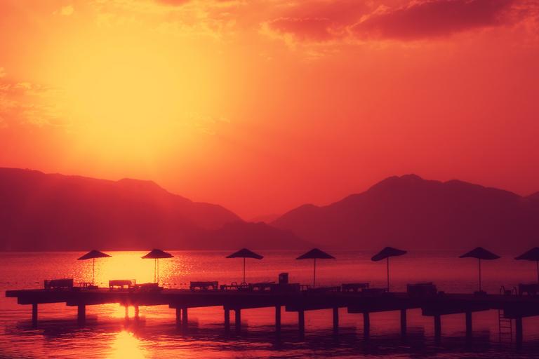 Keywords: vacation sea mountains beach tourism landscape nature seascape rock pierce umbrellas
