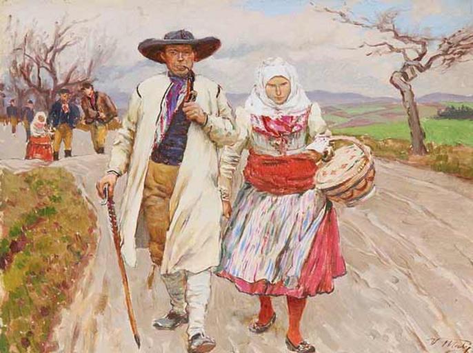 | Keywords: Vaclav Maly - Moravians 040.jpg Moravané Moravians oil cardboard cm 24 32 http //www dorotheum cz/jpgs/kat030307/big/040 jpg Creator Václav Malý PD-old-auto 1935 Other versions Paintings not categorised by year National costumes of Moravia in art Václav Malý painter Russet coat Russet coat Moravians ethnic group |