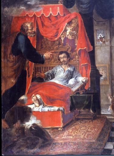 | Keywords: Valdes leal-san ignacio aparicion de san pedro.JPG La obra representa a San Ignacio de Loyola el fundador de la Compañía de Jesús contemplando una aparición del apóstol San Pedro mientras se hallaba enfermo en Pamplona circa 1660 1664 oil on canvas Size cm 158 215 Institution Museo de Bellas Artes Seville http //ceres mcu es/pages/Main accession number CE0199P http //ceres mcu es/pages/Viewer accion 41 Museo AMuseo MBASE Ninv CE0199P txt_id_imagen 1 txt_rotar 0 txt_contraste 0 txt_zoom 10 cabecera N viewName visorZoom PD-old-100 Paintings of Saint Ignatius of Loyola in Spain 17th-century paintings of Saint Ignatius of Loyola Paintings of Saint Peter in Spain 17th-century paintings of Saint Peter Paintings of Saint Ignatius of Loyola by Juan de Valdés Leal Paintings of apostles by Juan de Valdés Leal Paintings by Juan de Valdés Leal in the Fine Arts Museum of Seville 17th-century paintings in the Fine Arts Museum of Seville 1660s paintings in Spain |