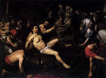 Keywords: Valentin de Boulogne - Martyrdom of St Lawrence - WGA24245.jpg between 1621 1622 Oil on canvas size cm 195 261 Institution Prado object history credit line accession number WGA link 24245 http //www wga hu/art/v/valentin/martyrdo jpg http //www wga hu/html/v/valentin/martyrdo html PD-old-100 painting religious French 1601-1650 Valentin de Boulogne French paintings in the Museo del Prado Boulogne 17th-century paintings of Christian saints WGA form painting WGA type religious WGA School French WGA time period 1601-1650 1620s paintings from France |