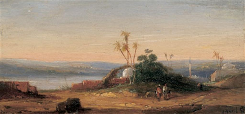 | Keywords: Valery Jacobi Orientalische Landschaftpict.jpeg en Valery Jacobi 1834-1902 An Oriental Landscape ru Вале ий Иванович Якоби 1834-1902 «Восточный пейзаж с видом на го од и двумя путешественниками на пе еднем плане» Location частная коллекция <br> Dimensions 6 3x7 5 см <br> Web source http //www artnet com/artists/lotdetailpage aspx lot_id 1D97A2CCE106E7AB19B10B20733E1FBE <br> Technique Oil on panel Creator Valery Jacobi < 1902 Valery Jacobi Private collections in Russia PD-old-100 | ||||
